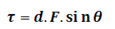 Onde d é a distância de aplicação da força em relação ao eixo de rotação, também chamada de braço da alavanca. F é a força aplicada e Θ é o ângulo entre a direção da força aplicada e a direção do braço da alavanca.